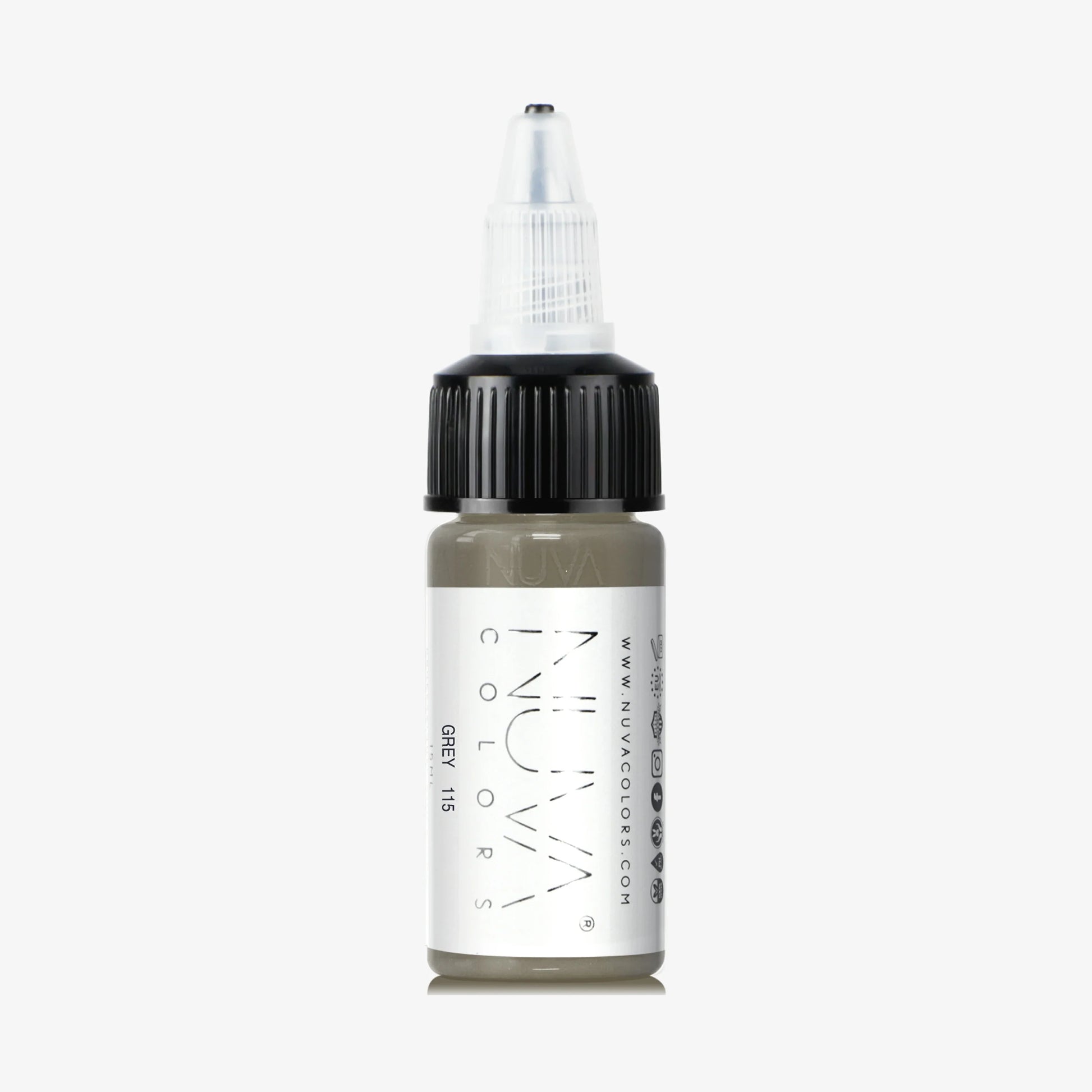 Formulated with Carbon Black, Red 101, Yellow 42, and Yellow 74 pigments, 115 GREY by Nuva Colors is a perfect blend of long-lasting and safe ingredients, providing vibrant results for PMU EYEBROW procedures.